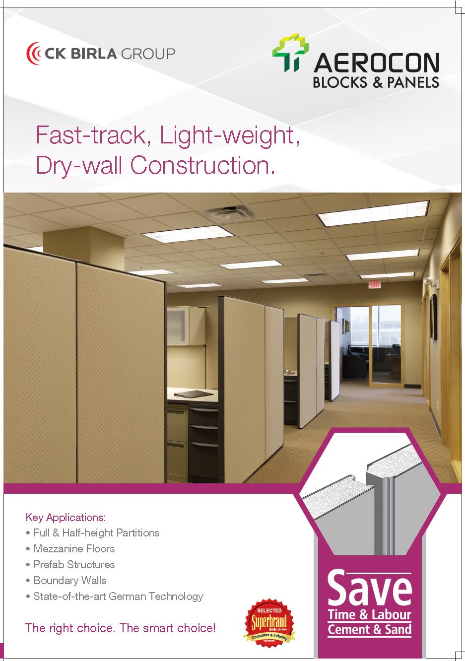 Apart from being fully cured at the factory itself,Aerocon's panels have a tongue and groove jointing system that facilities rapid construction with minimum effort.